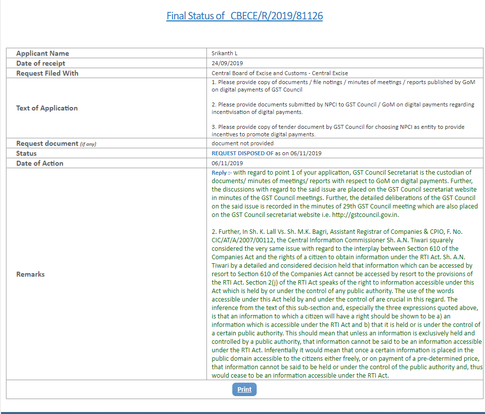 #CashlessConsumer asked GSTN about #DigitalPayments incentive scheme, there was a nice little throwball between GST Council and CBEC before they finally replied (only denying under a complicated reasoning). Appeal shall be filed. #RTI