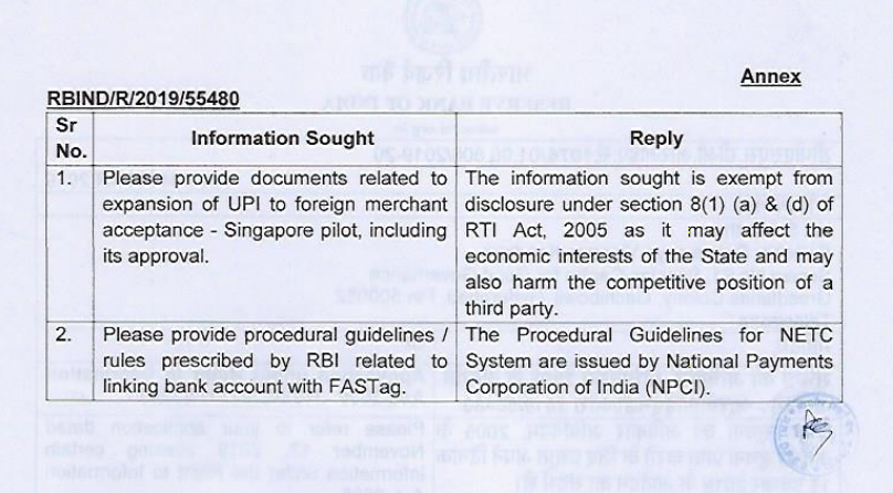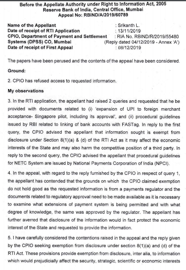 #CashlessConsumer #RTI We asked #RBI about expansion of #UPI and #FASTag procedural guidelines. Appeal shall be filed.