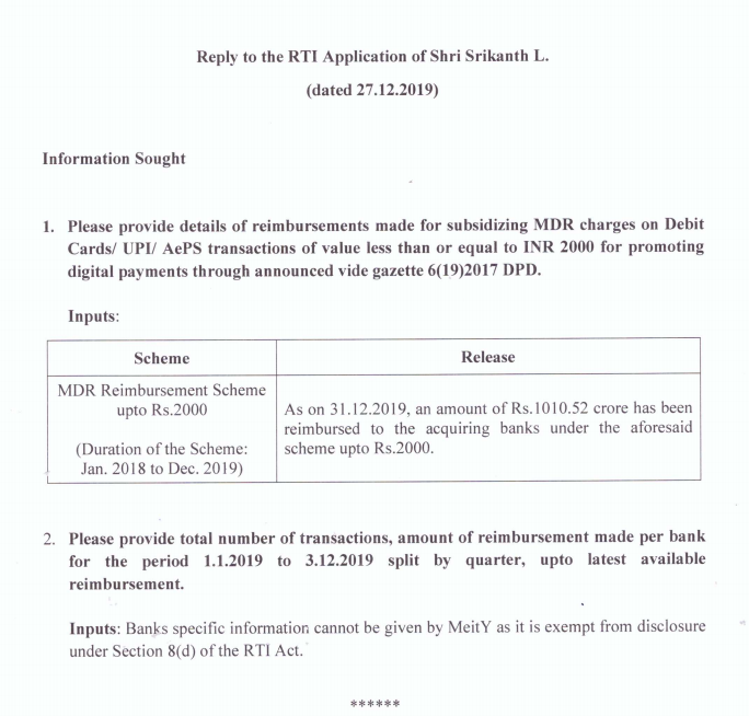 4. Conduct a public consultation to implement a clear legally enforceable transparency & accountability structure for the National Payments Corporation of India. NPCI is delivering a public function of subsidy delivery and has to transparent #RTI and accountable to public.