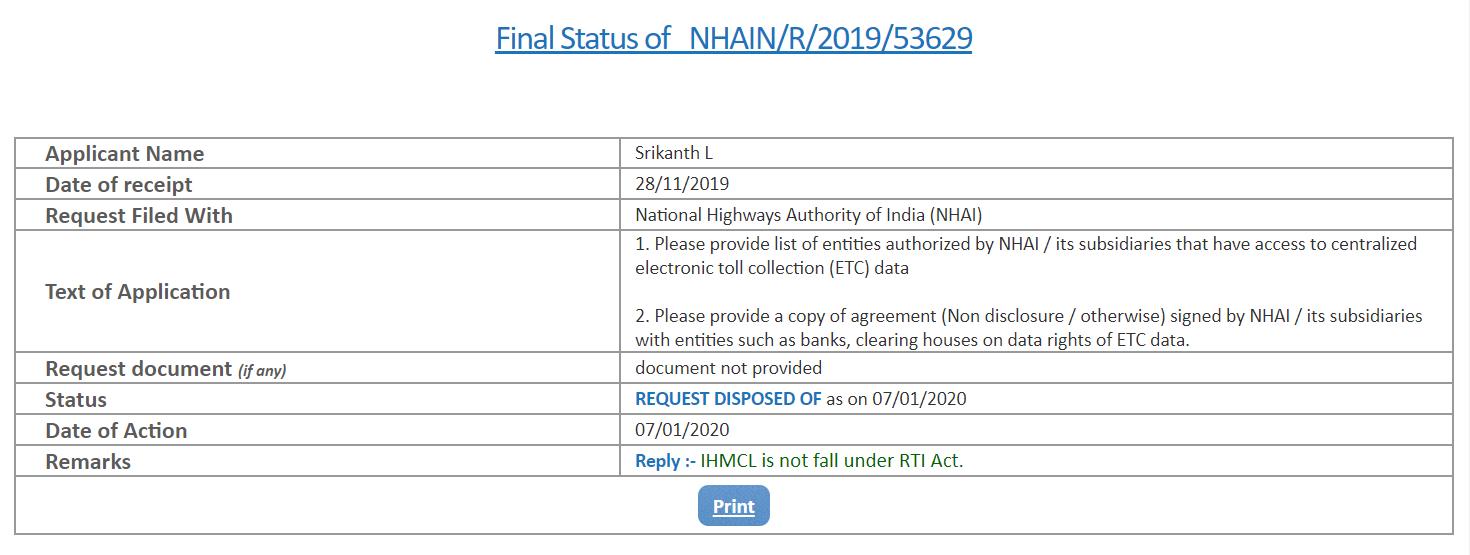 That is lot of personal data centralized with one private entity. What are the checks and balances? Well, there was RTI and NPCI silently removed it.