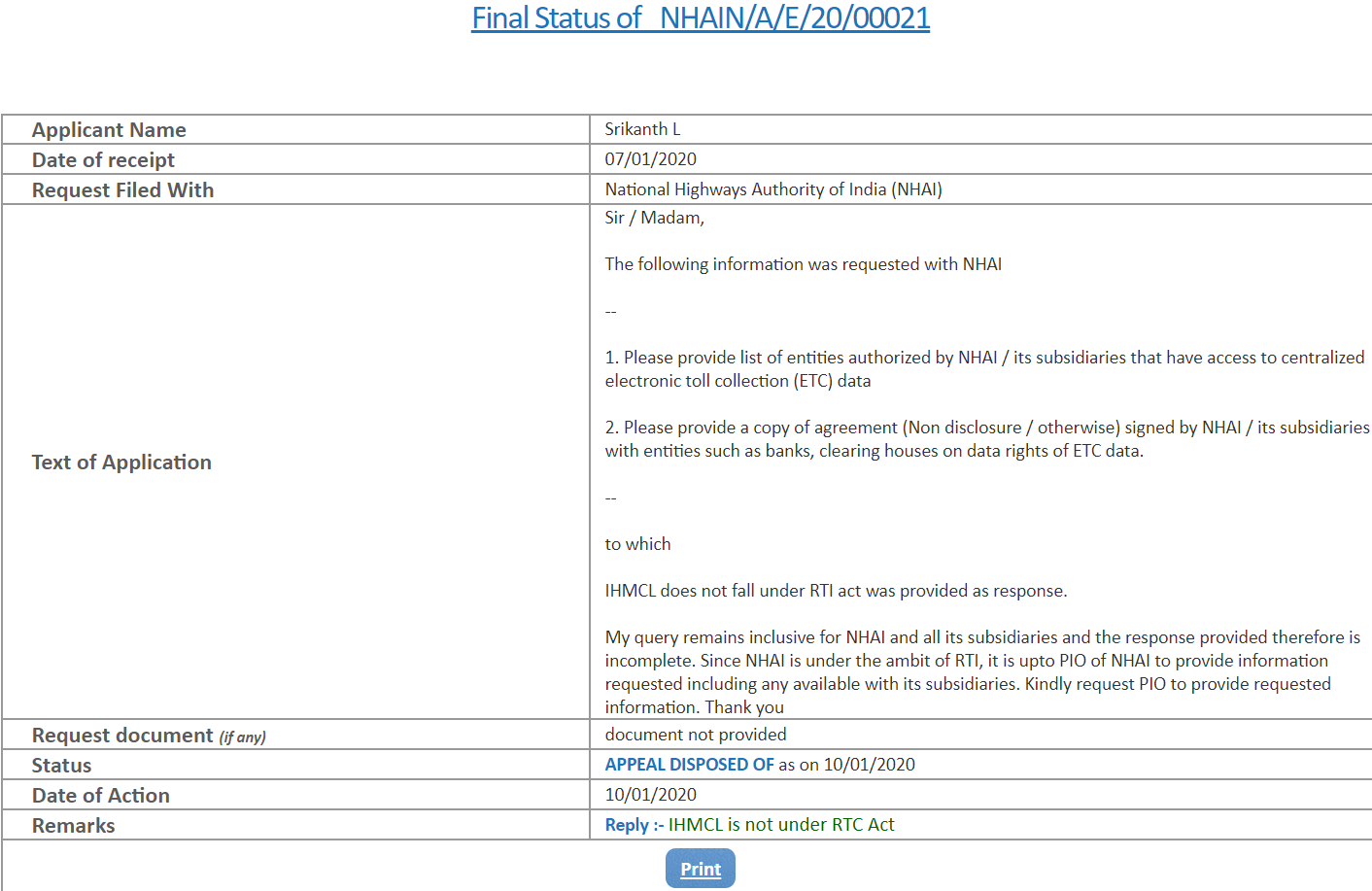 A new case against it in CIC has been on for 2 years and full bench ruled in interim order saying "it is substantial of law"