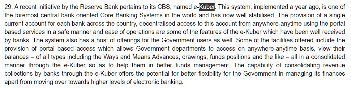 e-Kuber is the Core Banking Solution of Reserve Bank of India. e-Kuber Is being widely used by central and state governments for their financial management.