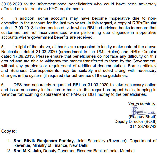 #CashlessConsumer - #DFS letter on relaxation of OVD requirements for opening a small account / KYC formalities of #PMJDY accounts, citing amendment to #PMLA rules relaxing strict KYC requirements to help poor. #PMGKY #DBT #COVID19